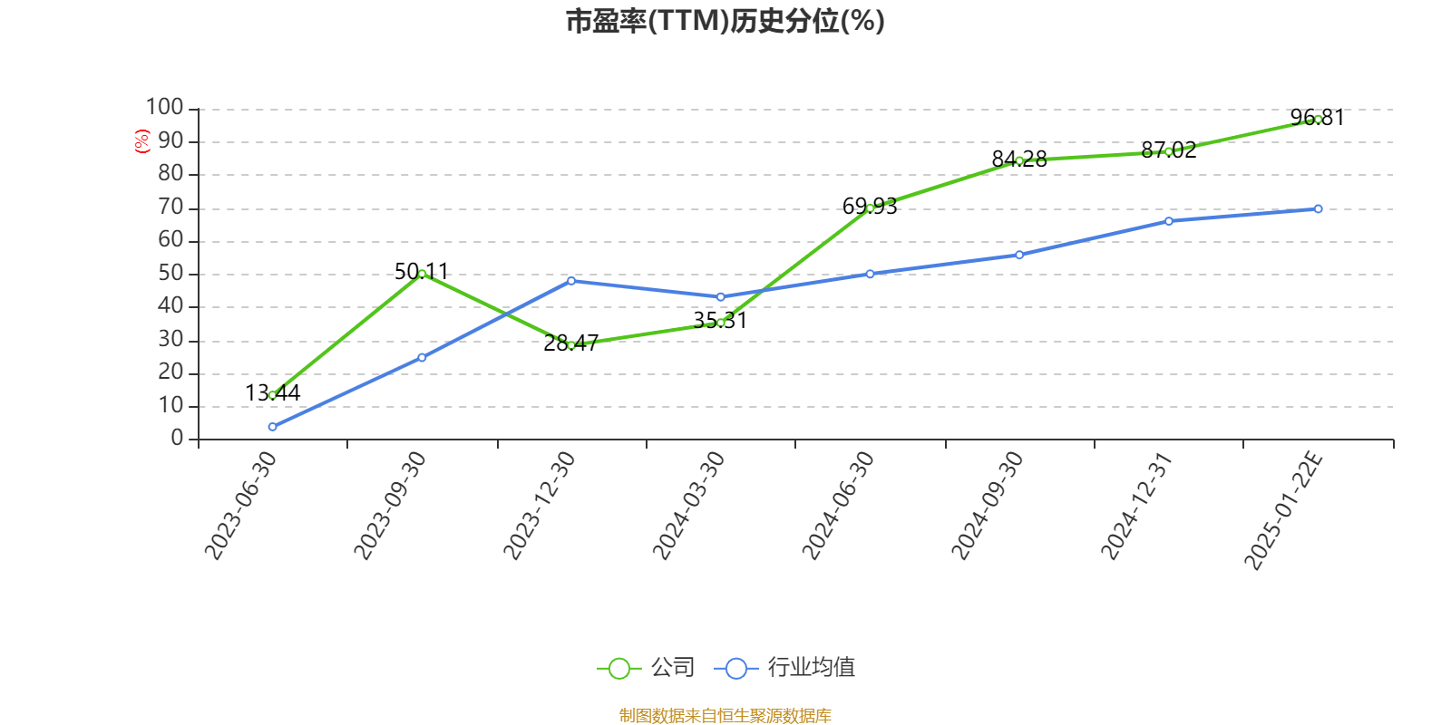 以本次披露业绩预告均值计算,公司近年市盈率(TTM)图如下所示: