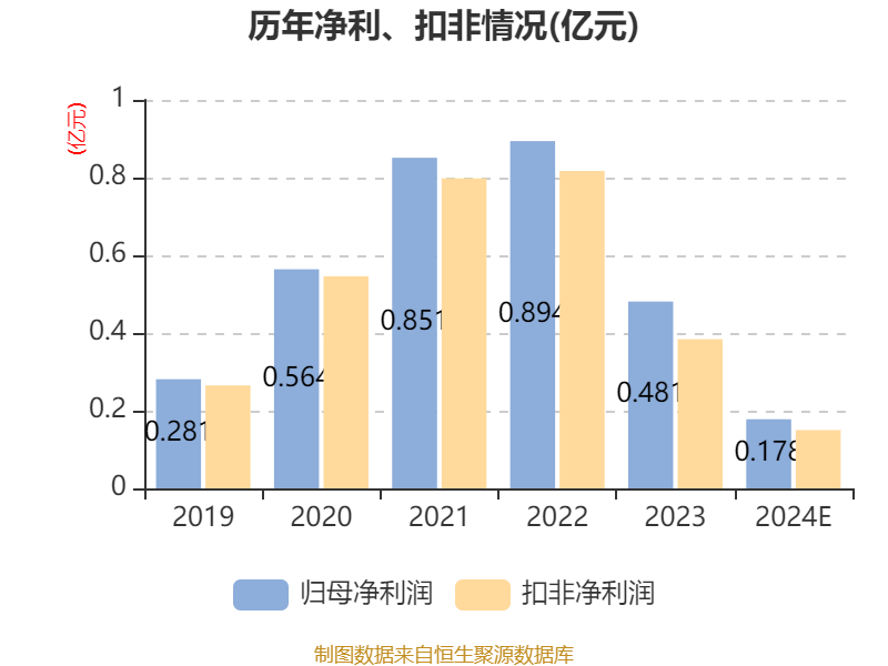 中证智能财讯中科磁业(301141)1月22日晚间披露2024年度业绩预告,预计2024年归母净利润1549.62万元至2012.72万元,同比下降58.18%-67.8%;扣非净利润预计1306.93万元-1697.5万元,同比下降55.77%-65.95%。以1月22日收盘价计算,中科磁业目前市盈率(TTM)约为225.48倍-292.87倍,市净率(LF)约3.62倍,市销率(TTM)约9.12倍。